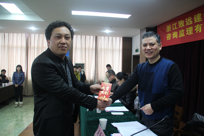 大会第一项议程是由公司总经理赵肖春讲话。赵总首先祝大家新年好,并对大家在大雾天能按时从各地赶来开会表示感谢。接着赵总没有像往常一样宣读工作报告,只是把2012年度工作简要总结为两个不好三个亮点。两个不好:一是2012年成绩不好,签回来的合同不多,与2011年比有一个很大的滑坡,二是得奖工程为历年来最少的一年。三个亮点:一是收入突破了五千万,二是承接了第一个项目管理合同,三是咨询这块获得了良好业绩。随后,赵总就2012年公司进行的人力资源优化项目作了说明,其目的是希望把我们监理公司历年来存在的一些问题和发展的方面,理清一个思路来,使公司发展得更好。我们在2012年准备了很长时间,咨询工作也开展了很长时间,有整整一年,我们将蓄势待发,寻求在2013年有所突破,在所有事情理顺状态下,只要上下齐心,共同努力,我们有充分信心在2013年能重新回到2012年的目标。从2013年的一月份开始,我们已经取得了一个非常好的开门红,在春节以前,公司已基本有把握的合同将近2000万。只要我们按照新的思路,有决心有信心去做,致远公司的发展肯定是会越来越好的。