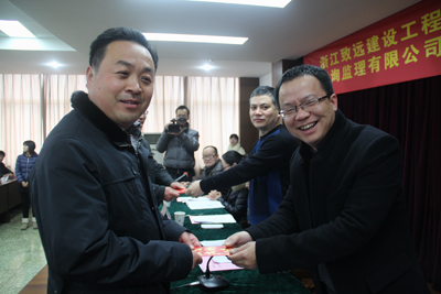 公司领导为获奖的项目监理部和优秀个人颁奖