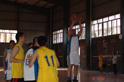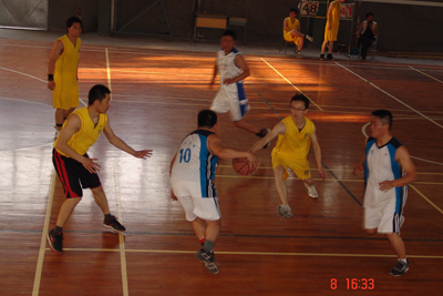 双方在短暂的热身运动后,随着裁判的一声哨响,比赛正式开始。经过抛球让两支队伍争抢第一次进攻,双方队员便很快进入了状态。赛场上你追我赶、你投我拦、穿插跑动、挡拆掩护、突破传球、空位投篮、卡位抢篮板等,比赛异常激烈精彩。凭借我方新上任队长蔡洪波沉稳指挥和队员的积极拼搏,公司篮球队始终以略微领先的优势带动比分交替上升。每次成功的配合和精彩的进球,都激起场下队员的喝彩。王晓坚不慎被球撞痛后,揉揉肚,伸伸手,又继续投入比赛;新队员吴海福在比赛中碰伤了手,咬咬牙,坚持比赛到结束。最后我公司以60:52微弱的优势赢得了比赛。