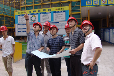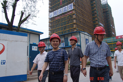 赵肖春总经理听取王宏伟总监介绍现场工作情况