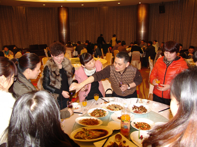 接着,公司总经理赵肖春举杯向在座的女同胞敬酒,祝女同胞们节日愉快!晚宴进入进行时。