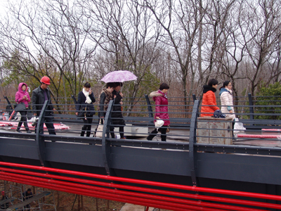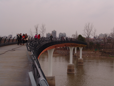 “春风又绿江南岸”。三月初春时节,江边绿草茵茵,柳树嫩芽点点,一派春色无限。公司总部女同胞一行在公司监理工程师张福明和朱堂兴两人的带队下,沿着婺洲公园江边,走上燕尾洲步行桥,然后转入燕尾洲公园,经绕一圈,折返中国婺剧院。虽然天下着雨,但大家兴趣盎然,不时为工程的壮观雄伟而赞叹。据介绍,燕尾洲步行桥将于今年5月份开放,届时,婺江上又将增加一道亮丽的风景线。