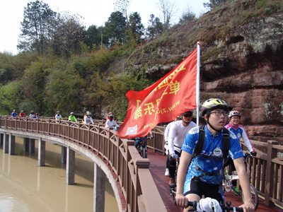 浙中绿道开启仪式骑行队伍通过山脚绿道