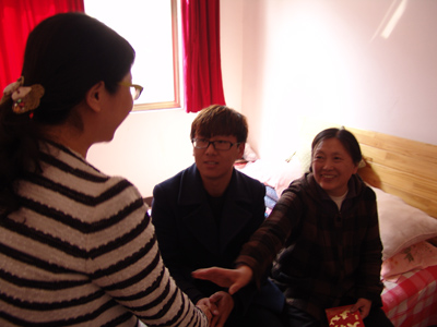 人资部经理施建红与陈炜母亲交谈
