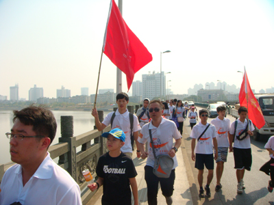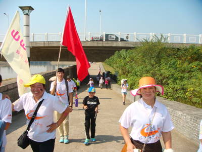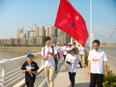 公司毅行队伍行走在康济桥上