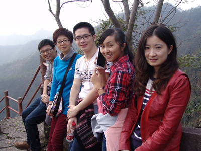 走进村庄,鹅卵石的小道连接着整个村庄,整个村庄基本上都是白墙黛瓦的老房子,阡陌交通,沟渠井然,卫生干净,确实是人居佳境。村中还参差坐落有几家卖土特产、酒家、手工艺品、小玩具等店铺,给人多了一份生活的温馨与留恋。村口有一口大池塘,在三面青砖黛瓦的映衬下,显得格外的古朴与宁静,池塘边有些老年人聚在一起聊天晒太阳,一派安详闲适的生活。我们参观了村中五个厅堂,其建筑之结构精巧、雕梁画栋、悠久历史、恢宏壮观令人惊叹。有人还因此认真地研究起古建筑的营造学来,说不定什么时候监理用得到,可谓用心良苦。在参观过程中,有人玩起了推独轮车的运动,有的试试推石磨磨豆腐活动,有的做起了酒店的店小二,有的与《爸爸去哪儿了》节目拍摄图合影,有的力拔山兮举石锁......快乐的声音久久回荡在新叶古村上。