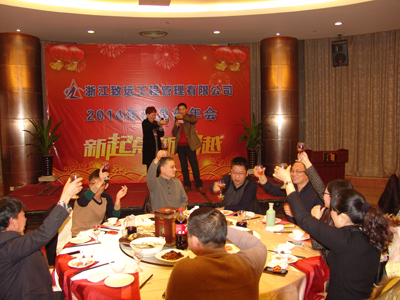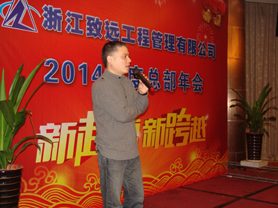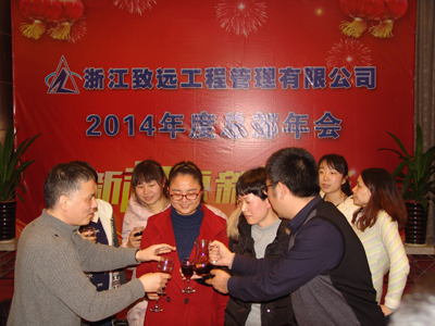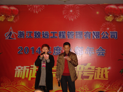 年会在主持人的新年祝词中拉开帷幕,接着由公司总经理赵肖春作新年致辞:感谢员工一年的辛苦,希望在大家共同努力下,公司越来越好。随后,赵总举杯向大家敬酒:共创美好“致远”未来。
