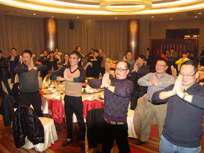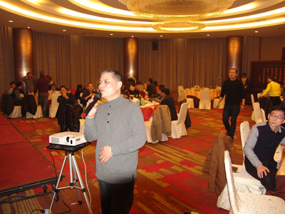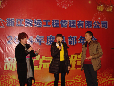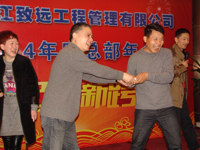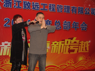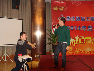 年会在热烈而隆重的气氛中进行,其间还穿插互动问答和抽奖活动,以及卡拉OK助兴,活跃了现场气氛。赵总还特别教了大家一个健身操,可帮助大家消除工作疲劳,现场员工学得都很认真,实践证明效果非常明显,个个喜笑颜开。