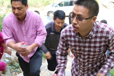 比赛在枊湖社区书记一声令下后,从半山村霞客古道开始到羊甲山村为止,我公司有5人参加了登山活动。古道以保存完好的石阶为主,两边竹木葱茏,清幽宜人。拾阶而上,或平路,或缓坡,如不比赛,人并不觉得很累。一路上,有溪流、有鸟鸣、有山花、有习习山风.......。大自然真是美妙无比,置身其中,乃心旷神怡!