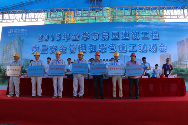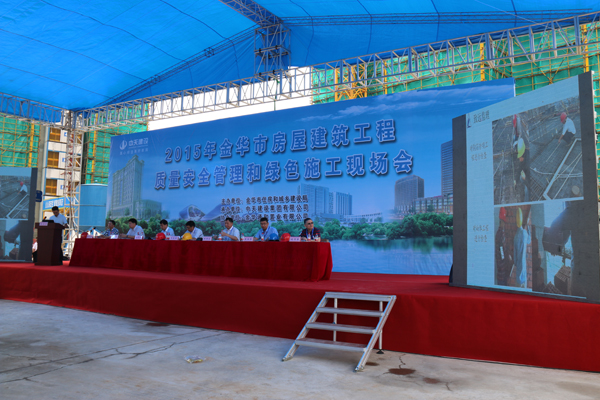 6月5日上午,2015年金华市房屋建筑工程质量安全管理和绿色施工现场会议在湖海塘庄园工地举行,有全市建设、监理、施工等单位600多人参加了会议,我公司部分市区总监参加了此次现场会,公司总经理赵肖春应邀就座主席台。
