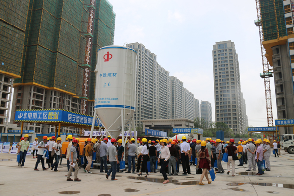 最后是现场观摩会,与会代表们现场参观了工程质量安全管理示范样标和绿色施工的各种方法演示,如干拌砂浆喷涂工艺演示、金厦砂浆喷涂演示等,使与会代表受益良多。随后,部分代表还乘座大巴前往第二现场进行观摩。