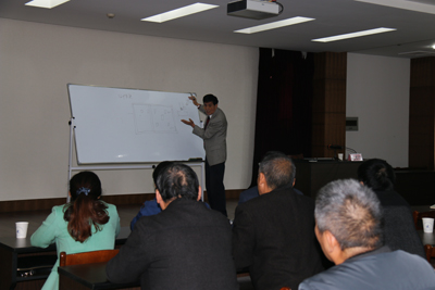 培训由东阳二建公司(现为海天建设)原经理、现为我公司总监赵依仁先生授课。赵总监虽七十多高龄,但上起课来依然精力充沛、激情飞扬,讲到动情处,声高在八度。赵总监时而坐着细致交谈、时而站起来在白板上画示意图、时而对某些重点高亢提醒,其授课形式得到了很好的互动,取得了良好的授课效果。其丰富的施工、管理经验在培训会上得以充分显现,许多工程细节上的处理技术让在座人员受益匪浅。