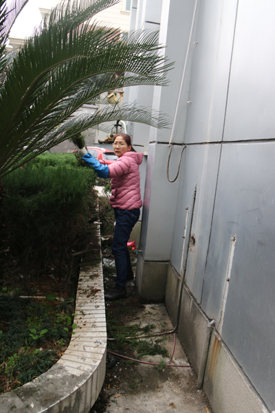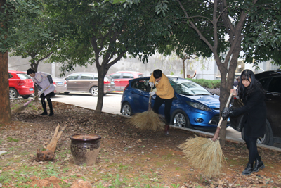 按事前分工,男同志搞公司食堂卫生,女同志搞办公大楼周边卫生。下午2时一到,大家准时来到现场,女同志就在公司办公大楼边马上干了起来,有搬树枝的、有捡垃圾石块的、有扫树叶的、有运垃圾的......。绿化带中的废纸等垃圾由于时间长,已于泥土粘在一起,需要人进去用手一张一张捡起来,而灌木枝条茂密且还有带刺的,许多人的手被树枝划破而浑然不知。有的则不怕脏臭,下到沟渠中,清理出又黑又臭的垃圾。另一边则是在公司食堂内,男同志在胡志云副书记的带领下,不怕脏不怕累,认真清理沟渠烟道、油道、下水道,清理橱柜卫生,清理地面油渍,还清理了食堂外围的沟渠卫生,使食堂卫生焕然一新。