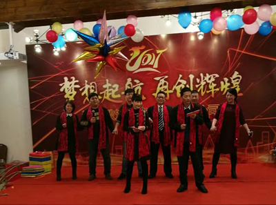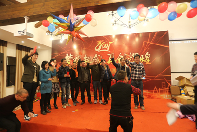 年会在《难忘今宵》、《鸡叫进行曲》中慢慢落下帷幕,许多员工意犹未尽,都争先要求上台表演,无奈相聚时刻总是让人感到短暂的,我们希冀来年此时与君再共度这美好时光。