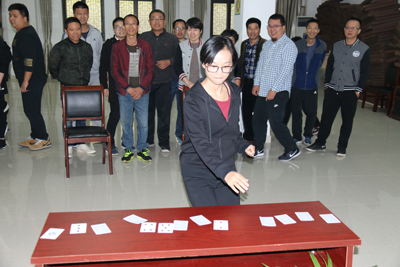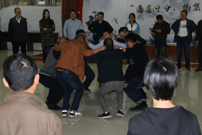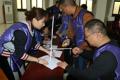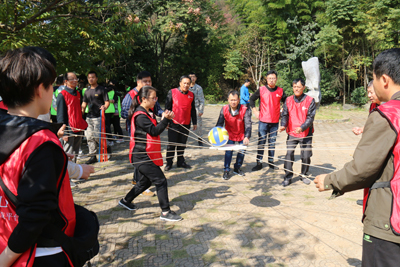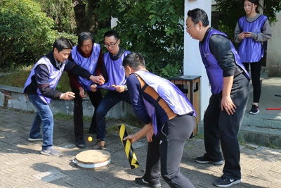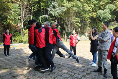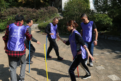 早上8时,载着40余名公司员工的大巴从公司总部出发,9点准时在黄大仙祖宫老子学院举行开营仪式,公司总经理卢一奇进行了开营仪式讲话,其主旨:一是平时大家的工作都很忙,乘这次机会,放飞下心情,释放下自身的压力;二是希望在有趣的活动中,磨炼人的意志,增强团队意识,加强沟通和交流,并强调了活动中一些应注意事项。随后进行排列分组,40余名队员,除1人摄影外,其余人员分成3组,分别命名为“战狼”队、“大V”队和“雄鹰”队,并各取了口号、队歌。经过短暂的团队磨合,就进入“顺序翻牌”的团队协作能力竞赛活动,体验团队分工协作的重要。然后,进行了基本军姿练习,磨练了意志,养成了良好纪律观念。其后进行的“不倒翁”游戏活动,意在培养团队合作精神和责任意识,体会“不倒翁”的乐趣,感受团队的温暖;“七巧板拼接”项目游戏,增强了大家服从“一盘棋”总体工作意识下资源信息共享和合理充分利用的重要性;“基建狂魔”训练项目,发挥天马行空的想象力,展开头脑风暴,进行传统与创新的碰撞交流,充分发挥了学员的聪明才智和集体的智慧;“挑战90秒”竞赛项目,训练学员不断的超越原先的自己,并把自己的目标和组织的目标相结合,领队则要学会分解目标,整合目标;“报数”竞赛游戏,则不断磨合团队配合程度以至达到极至,其中以 “战狼”队两次落后,最后一次反败为胜,笑到了最后。
