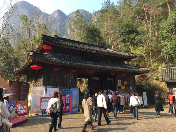 经过一晚的休整,3月10日,是此行的第三站,也是本次活动的重头站一一游览神仙居景区。也许是致远女神们的人品好,昨晚还是雨天,早上起来却是一个碧海蓝天的大晴天。吃过早餐后,会同仙居分公司的女神们坐半小时车程来到了国家级森林公园神仙居。首先映入眼帘的是奇峰奇石,蔚为壮观。然后我们乘索道上山,真是一览众山小,到山顶,群山尽收眼底,什么”西罨慈帆”、”画屏烟云”、“佛海梵音”、”千崖滴翠”、”犁冲夕照”、”风摇春浪”⋯⋯美不胜收!不愧是景色秀丽的人间仙境。景区内负氧离子含量奇高,平均达2.1万个/每立方厘米,最高处达8.8万个/每立方厘米,是名副其实的天然氧吧。