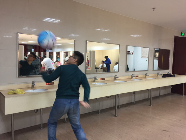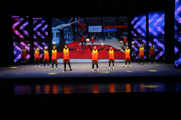 “梅花香自苦寒来,宝剑锋从磨砺出。”致远公司篮球队队员在《活力篮球秀》节目训练活动中,放弃了许多休息时间。顶转篮球是个技术活,除每人发一个篮球进行个人转球自练外,还要在教练的指导下,进行队员配合训练。队员们利用业余时间刻苦练习,有的把指甲都磨光了,有的手指也磨出了血,但没有哪个有畏难情绪。在走场过程中,队员们认真仔细站位卡点,不放过任何一个细节。因为《活力篮球秀》节目最大的难点是稳定,旋转的篮球随时有可能脱落,节目演出效果就会大打折扣,有的队员在化妆间隙还在练顶球,生怕在演出时出差错,其精神可嘉。