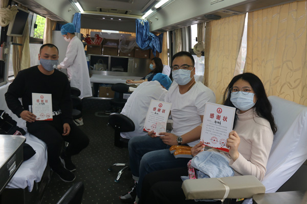 活动中,参与献血的人员严格按照疫情期间管理要求,有条不紊地分批在致远公司门口大厅内进行填表、测压、化验,合格后到公司门口前的移动采血车上采血。致远支部小组长郑国建同志早早来到公司第一个带头献血,预备党员张栋紧随其后献上爱心热血;党员吴镇淼上次因感冒没能献血而感到遗憾,这次能够顺利献上爱心血感觉非常开心与自豪;党员吾有祥、总监张校斌、总代周知晓不怕路途遥远也要从外县市地赶来献血,而且吾有祥同志个人已累计献血达4000毫升;巾帼也不让须眉,一听到献血,我们的女同胞陆雪就毫不犹豫地卷起袖子也加入到献血行列。还有一些员工因有一点小问题未能献血而感到惋惜,表示将调整好身体后再献血,热情满满。当天完成献血后,每位献血者都收到了一张献血感谢状。