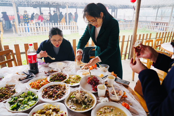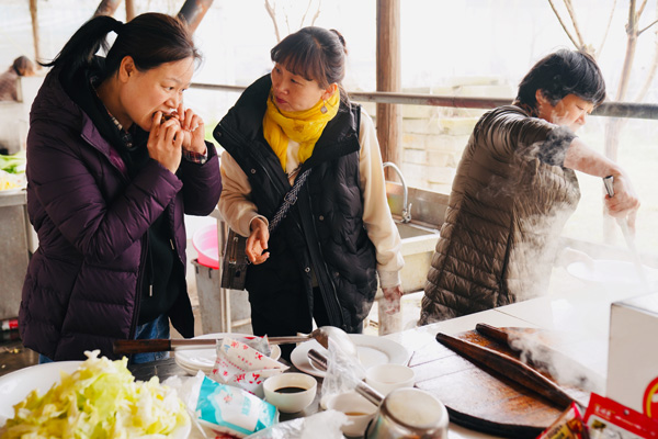在农耕文化园土灶区里,大家吃着热气腾腾的饭菜,感受农耕生活的快乐。还有的人吃到了久未尝到的土灶锅巴,幸福的不要不要的,大家也在品味美食中祝福女神节的到来。