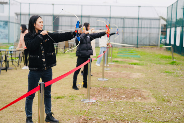 插花活动后,女神们还各自成群结对,进行了骑马、滑草、射箭、游船等活动,放飞自我,陶醉于春意萌动的生机中。