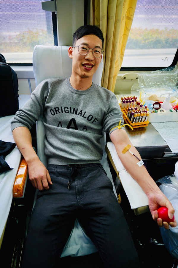 早上8点15分,血站的采血车来到致远公司大门口,大家有条不紊地经过体温测量、填写表格、出示绿码、信息采集、测量血压、血液化验等程序,合格后进行采血。致远直属支部委员吴镇淼早早来到现场第一个带头献血,老党员郑国建同志几乎每次都来参加,他俩已多次献血,神情轻松自如;党员杜荣是第一次献血,心情略有紧张,但信心十足;而党员吾有祥在微信上发来照片,其已在血站献上了血小板;女中豪杰陆雪,则是很早就记挂献血之事了,她说从自身的孕产感受到献血奉献的意义,这次毫不犹豫地献了400毫升;陆彦同志则在大家献血进行到一半时得知消息马上赶过来的。有一些人却为因一点小问题未能献血而感到非常遗憾,如入党积极分子曹明德平时身体棒棒的,因上星期出差得过急性肠胃炎,说什么都要过来看一下能不能献,当被告之不能献血之时,感到非常惋惜并表示来年再献。经过2个多小时,顺利完成了本次献血活动。