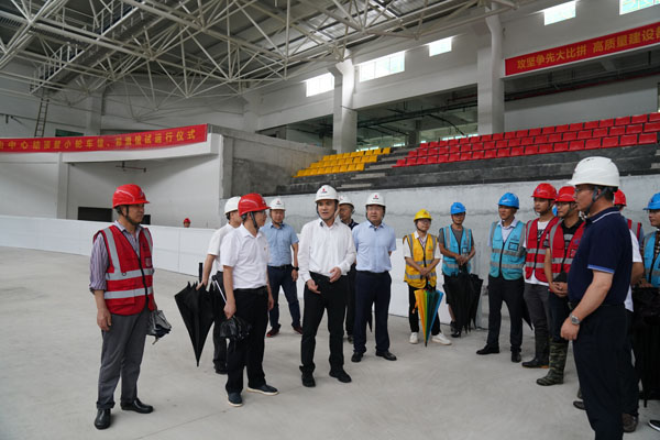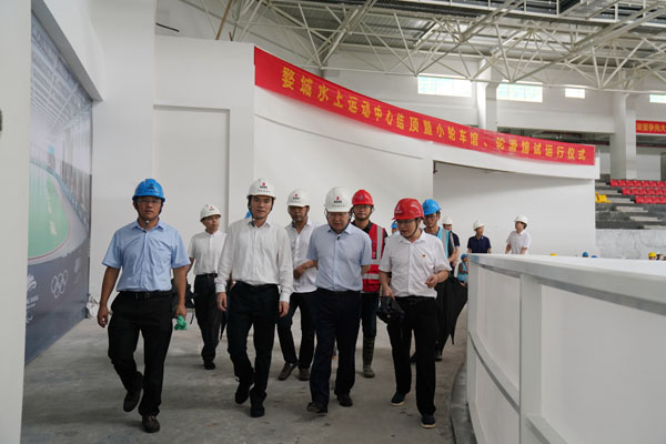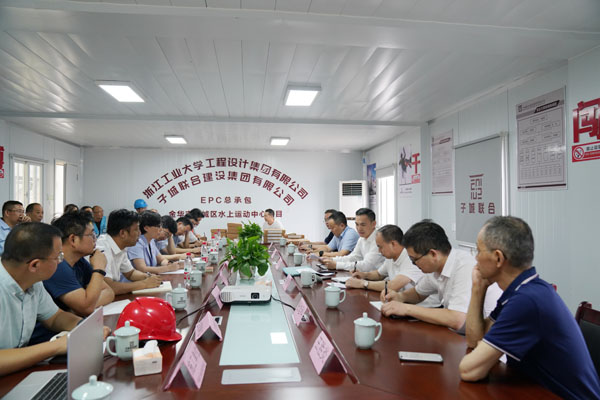 2021年6月30日上午,浙江省住房与城乡建设厅党组成员、副厅长孙哲君带队视察金华市婺城区水上运动中心项目等重点工程项目现场安全生产管理情况。金华市副市长赵秋立、金华市建设局党委书记、局长傅国启、婺城区建设局及市质监站等相关领导陪同视察,金华市婺城区城乡建设投资集团有限公司、易球体育、子成联合建设集团有限公司等单位项目相关负责人陪同讲解。