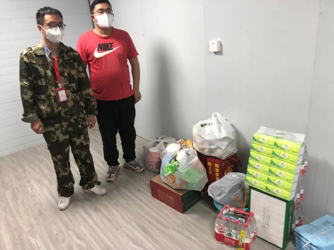 他们在做好防护的前提下奔赴超市采购了泡面、面包、矿泉水、口罩等生活物资和防护用品,并通过安全无接触方式送达到了抗疫一线人员手中,让坚守战疫的一线员工和建设各方人员感受到了致远人的温情。