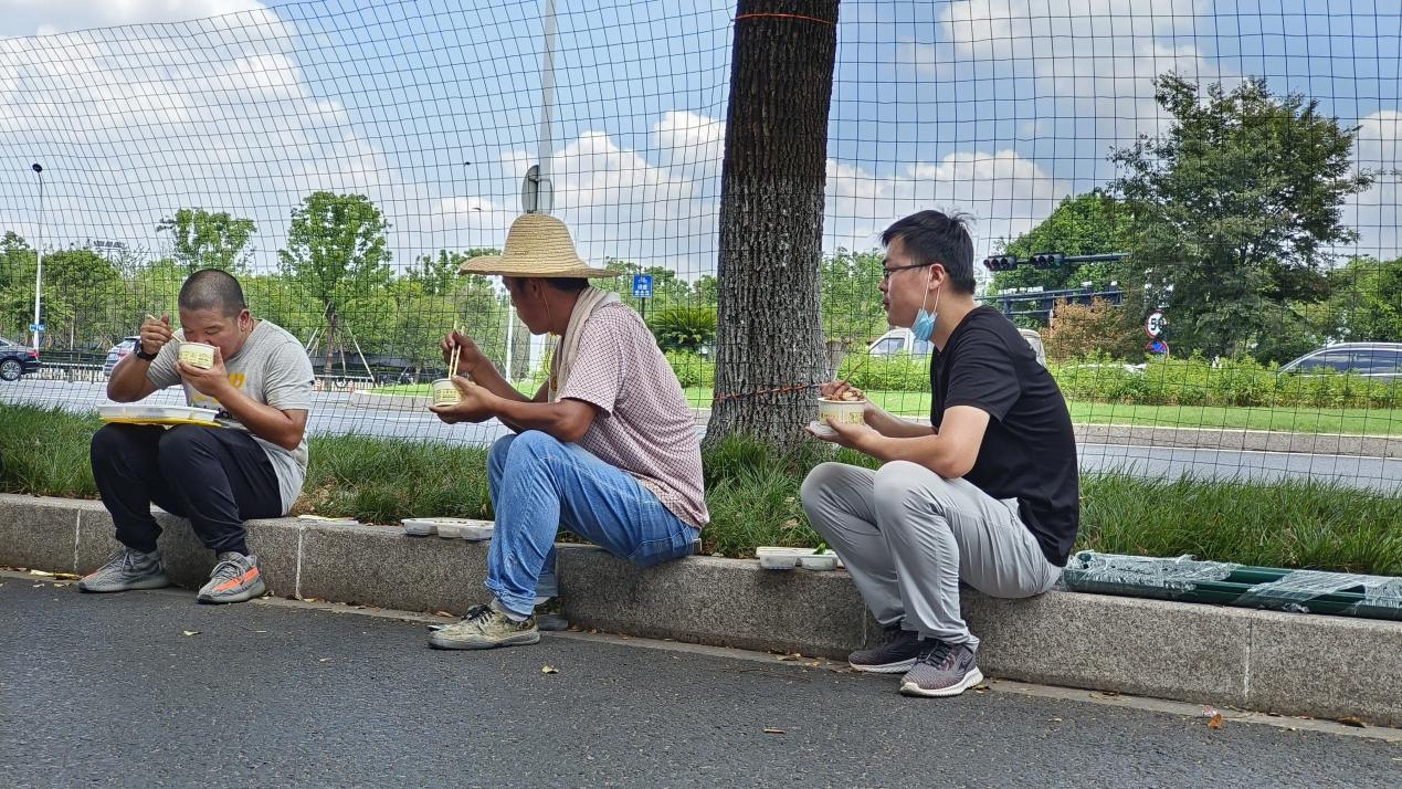 8月3日7点收到分派搭建江东街道下傅村封控隔离紧急任务后,交旅集团火速安排各单位人员组建突击队奔赴现场,浙江致远铁路义乌站广场综合交通枢纽站前广场监理部总监方俊强、党员吾有祥第一时间报名参加。