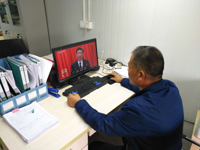 公司支部针对两公司人员的工作性质及地点不同,在致远公司总部迎宾大道会议室开辟一会场收看十九大报导,另在十八里试验所大楼开辟另一会场收看十九大报导,相关党员可选择就近会场收看,而各项目工地在岗的党员,则要求利用当地可利用的资源条件进行收看。大会期间,致远支部微信群不断收到会场和各项目工地党员发来的收看图片和微感言,大家热情高涨,迅速掀起一股学习习近平十九大报告的热潮,同时也带动了干部群众一起来收看关注十九大报告,关注党和国家大事。
