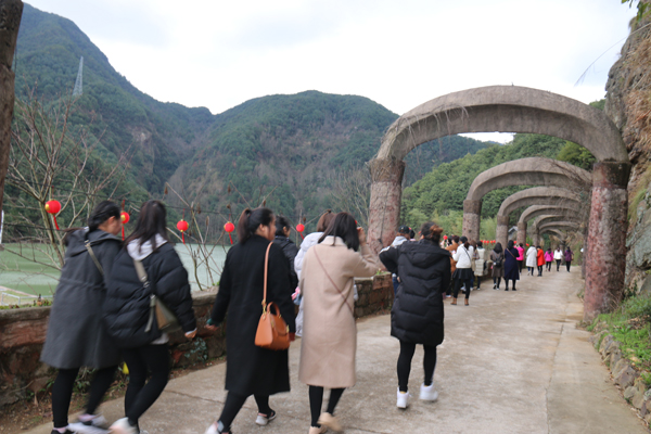 女神们首先乘船游玩一段景区,蓝莹莹的湖水让女神们惊叹不已,感觉心灵受到极大的洗礼,感叹大自然的神奇魅力。下了船,沿溪流而上,涧水淙淙,似春使呢哝;溪岸边的柳树枝头,也正吐出鹅黄的嫩芽,齐齐的向天张开小口,显出春的勃勃生机;有幸的是,山的高处,因前一夜的大雨,巨大的瀑布倾泄而下,发出如雷似的隆隆响声,真为大自然的威力而震撼。女神们也被这景色陶醉了吧,纷纷拿出手机,留下这春的时光,留下自己靓丽的色彩,嗅着这叶的清香、花的芬芳、春的气息,女神们的心情得到了完全放松。一路上,女神们还玩了荡秋千、过独木桥、滑滑梯等项目,欢歌笑语充满了整个山谷。