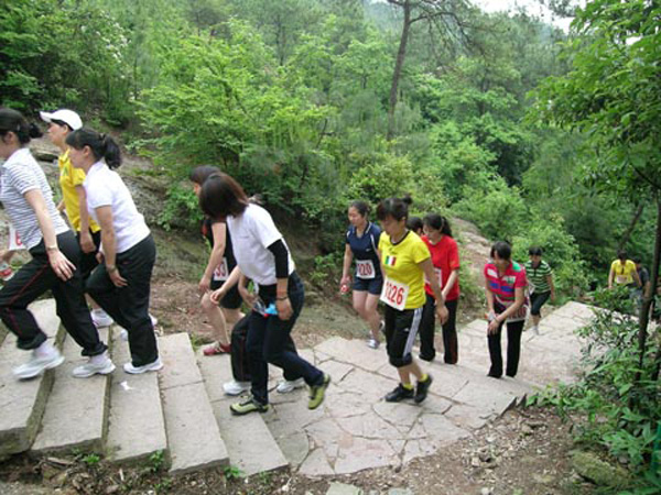 9时整,一声号令,大家争先恐后地沿着石阶向上攀登,有的一步二阶,有的是一步三阶,还的是瞅准小路直插而上。虽是9月的天,但仍是气热炎炎,可团员却个个如出山猛虎,奋勇登高,大家一路情绪高昂,你追我赶,不觉已跨过一千九百个台阶,登上山顶,甚感壮志豪情。鸟瞰金华城区,一览无遗,畅快之至极。