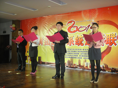 2012年12月28日晚上7时,公司九楼会场张灯结彩、喜气洋洋、热闹非凡,由共青团金华市住房和城乡建设局工作委员会主办、我公司承办的共青团建设系统迎新联欢晚会在此盛大开幕。