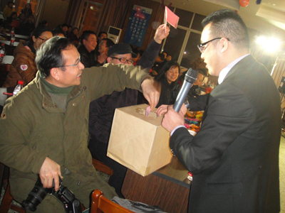有关领导给现场观众抽取幸运奖