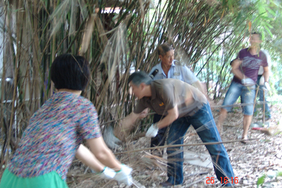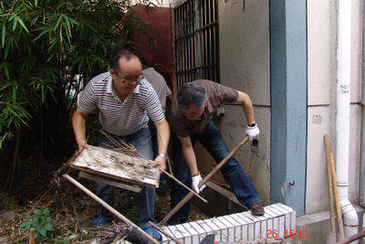 公司党员参加公司食堂后绿地的清淤除杂清理工作图七
