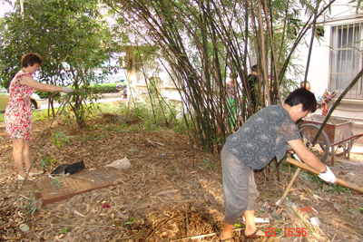 公司党员参加公司食堂后绿地清理后的现场一角