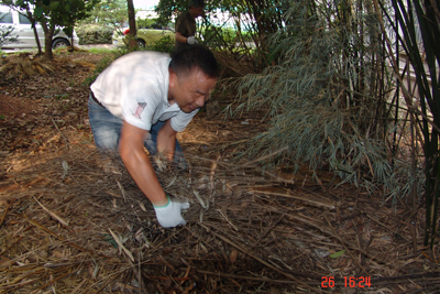 会后,党员还参加了公司食堂后绿地的清理工作。大家冒着40度的高温酷暑,深入下水沟,钻入杂草丛,清理了乱石砖块,清除了杂草、枯叶、干枝等。闷热的天气,汗水湿透了党员们的衣衫,杂草枯叶弄痒了身体、划破了手指,但没有人叫一声苦、喊一声累。清理后的绿地,整齐、清爽、通透,让人心旷神怡。清理工作不但美化了环境,同时也有效阻止了蚊蝇的滋生。广大党员此次清淤除杂工作,不仅体现了党员的先锋模范作用,也得到了广大员工的一致交口称赞。