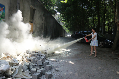 2016年6月6日下午,公司组织总部各部门有关人员在公司大院外堆放废试块处进行消防演练。